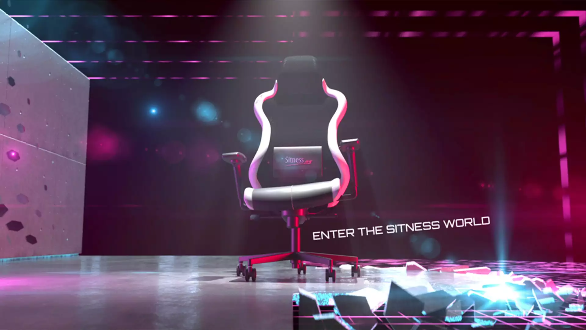 Futuristische 3D Animation eines Gaming Chairs